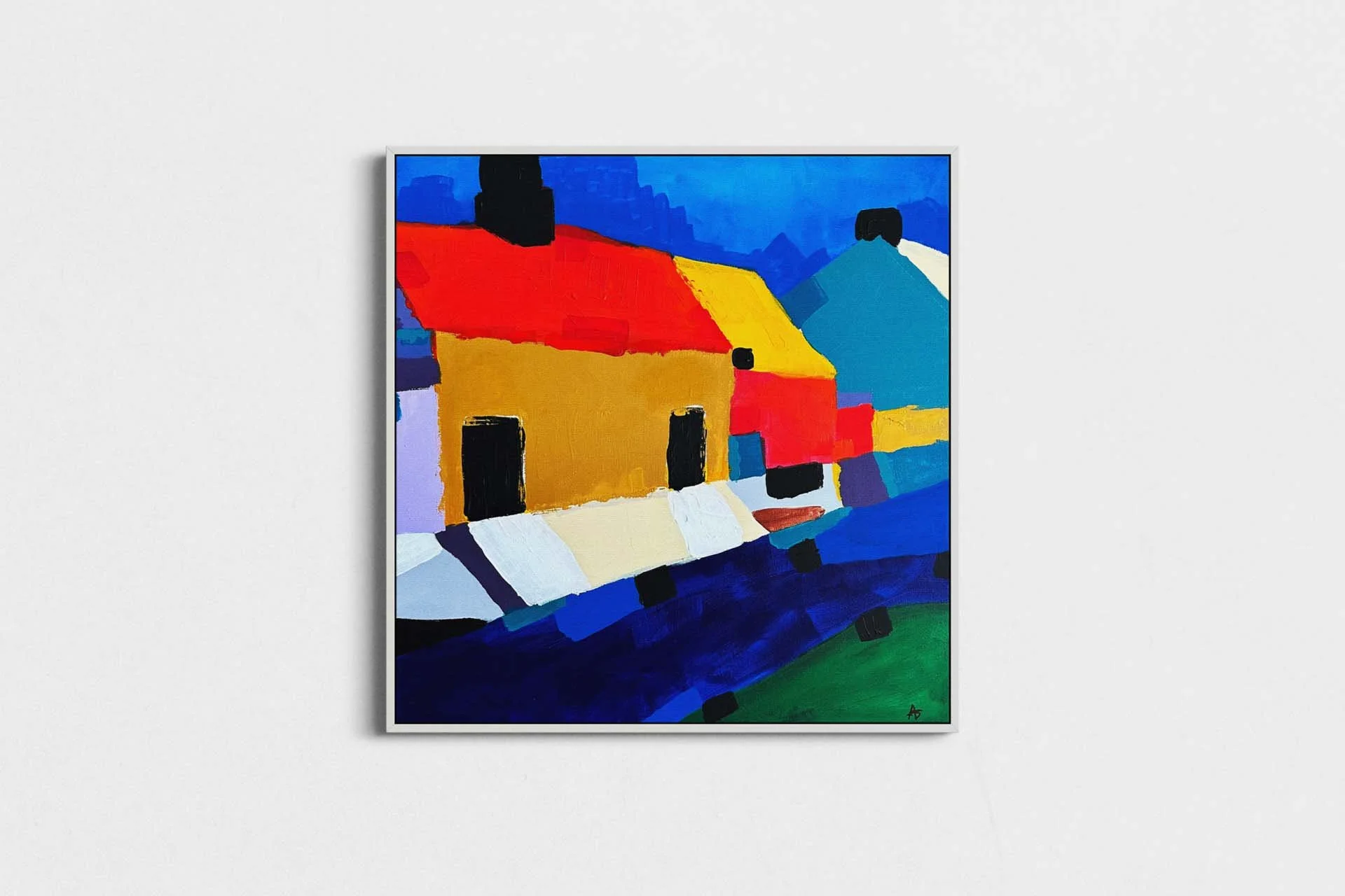 As a visual artist, I create bold, expressive abstractions that explore the relationships between colour, form and space, all expressed from a place of searching and seeking in my own journey with mental health. Through gestural brushwork and vivid colours, I balance structured elements with spontaneous expression.